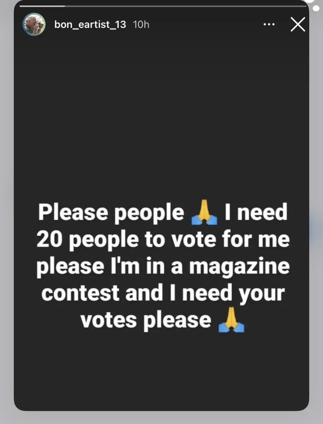 Hello, please don't fall for the latest attempt from my instagram hackers. They obviously were not able to convince any of you to buy their fake bitcoin so now they are attempting to hack your account by asking (begging) you to vote for me in some fake art competition. Please report!